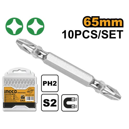 Ingco Screwdriver bits PH2+PH2, 65mm,10pcs/set