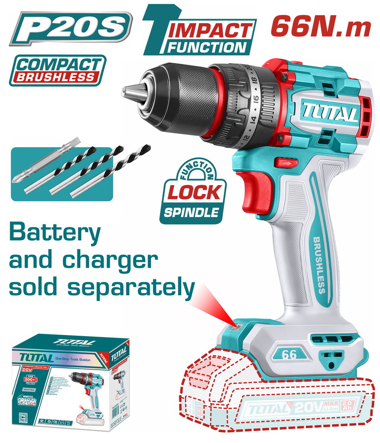 Total Compact Brushless Cordless Impact Drill 66Nm 20V