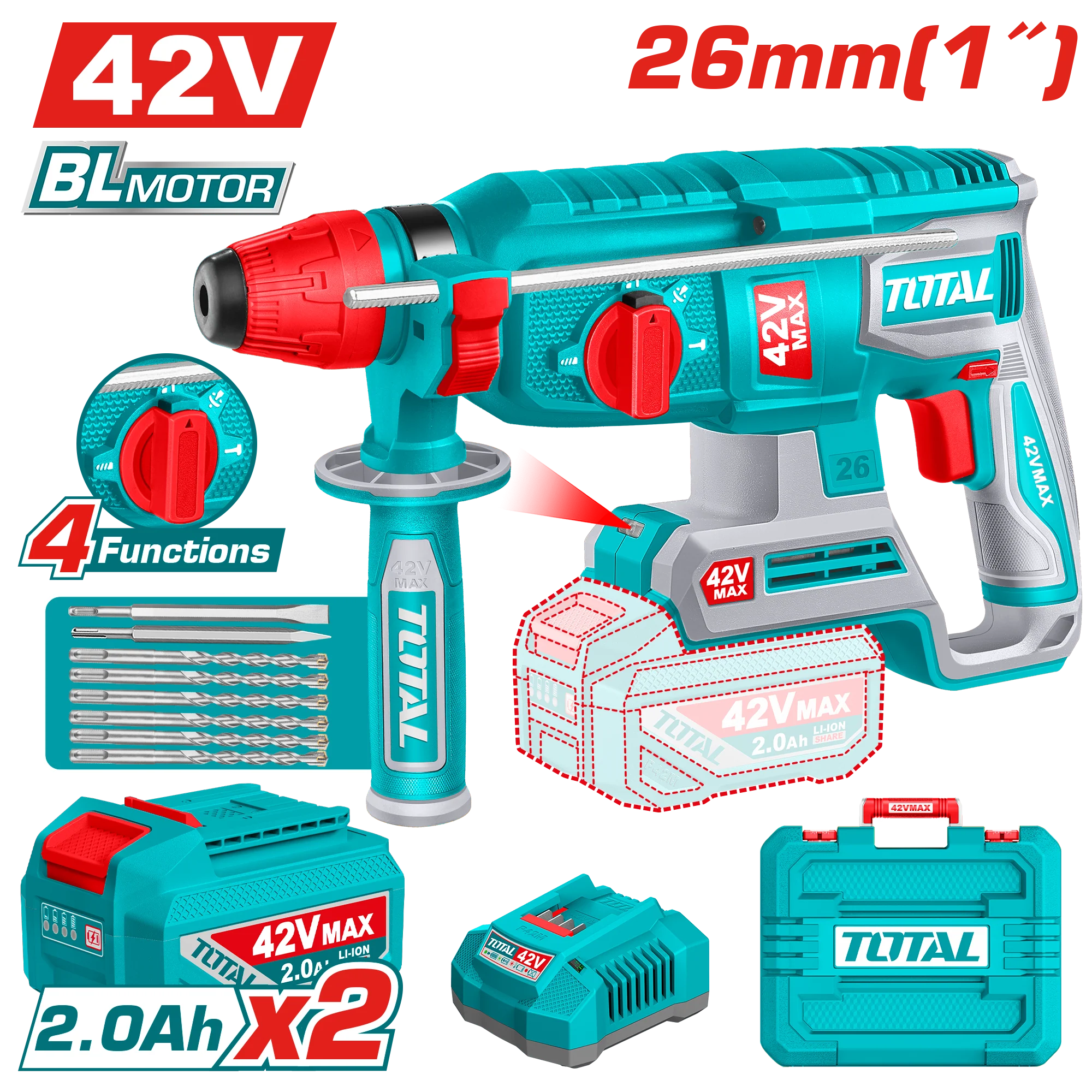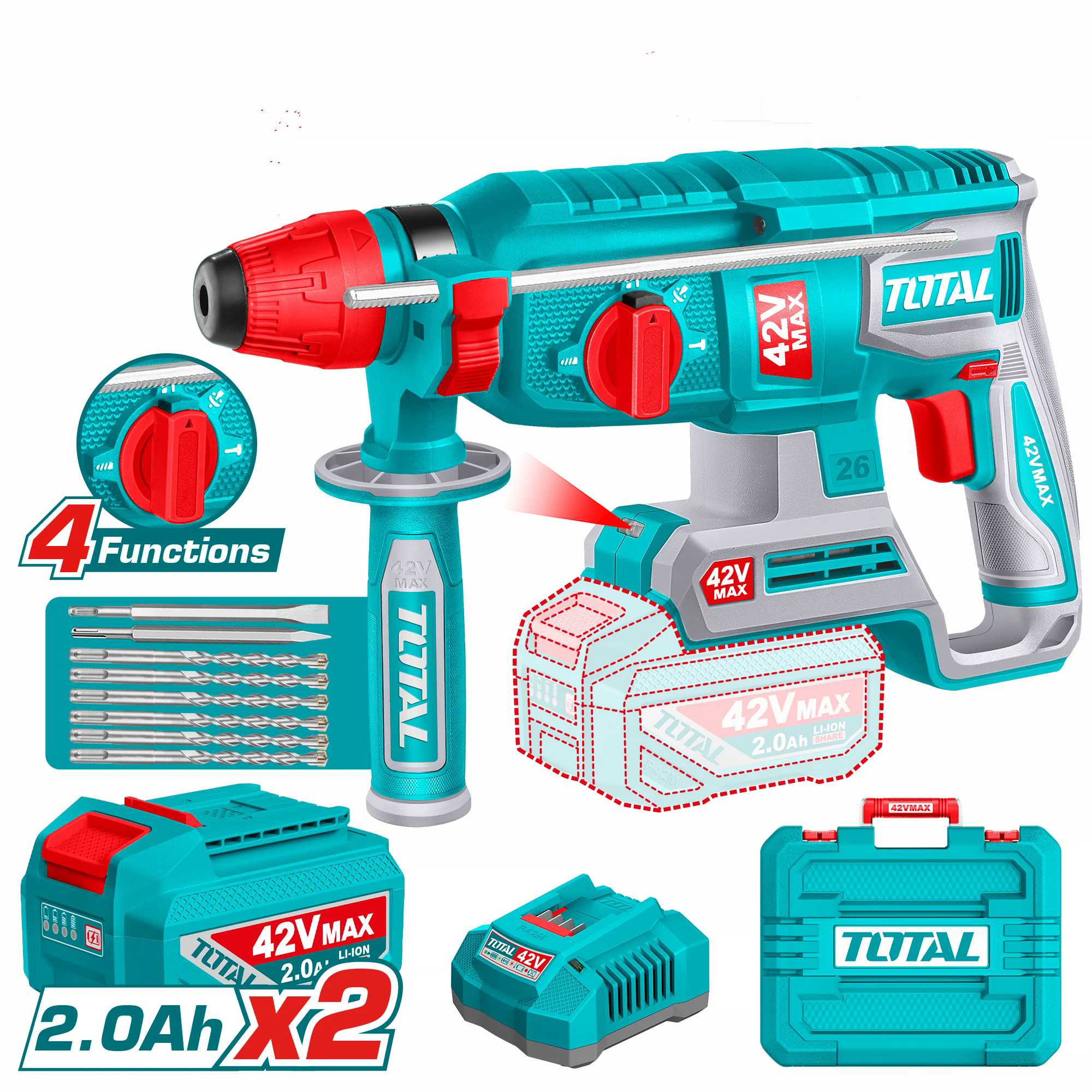 Total Cordless rotary hammer 42V 26mm