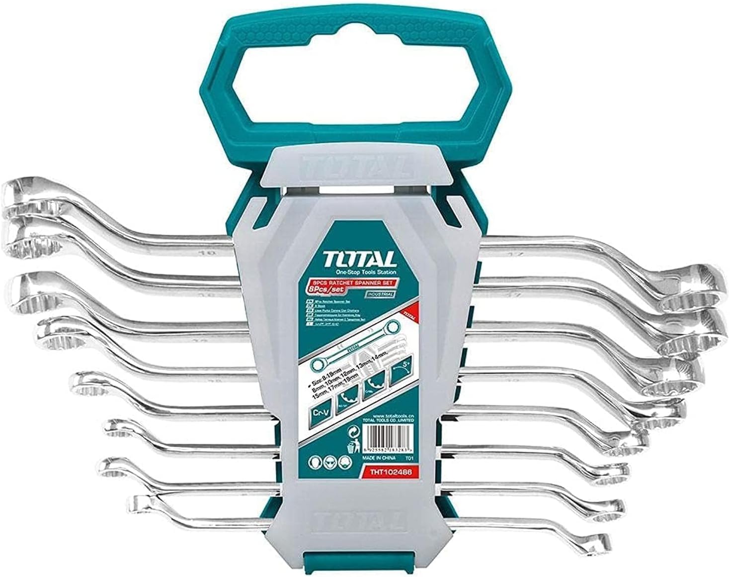 TOTAL 8 Pcs ratchet spanner set Size:8-19mm